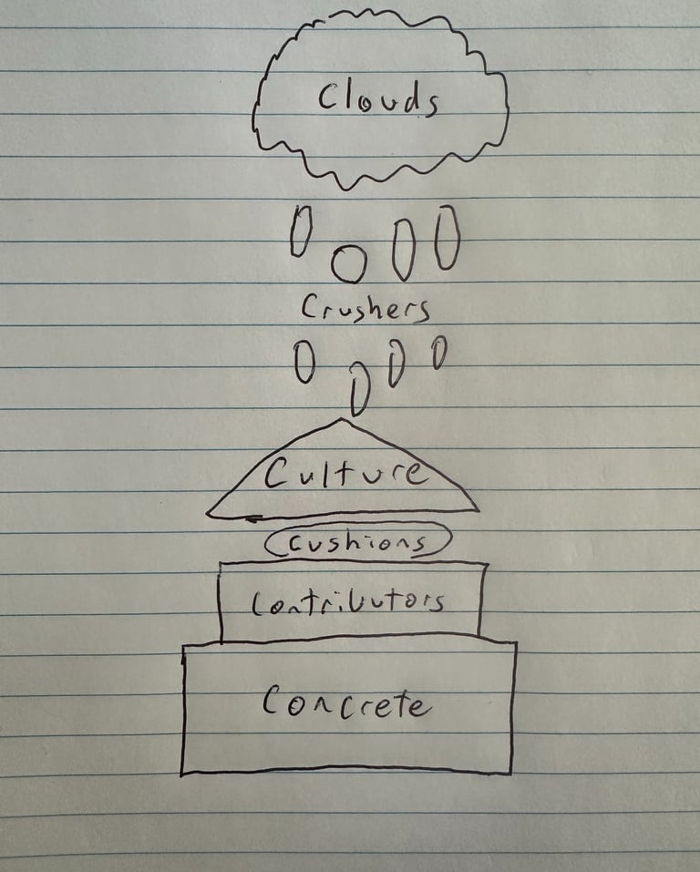 Like a triangle, a strong culture built on solid foundations will withstand pressure from above when the clouds open up and hailstones the size of bowling balls (golf balls just aren’t big enough) come crashing down.